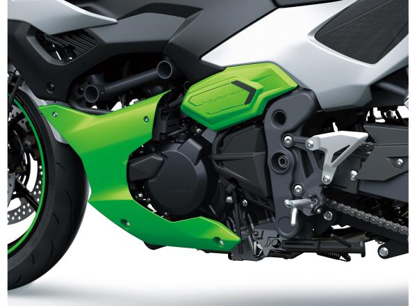 As a next-generation Supernaked model, the Z7 Hybrid combines aggressive Z styling with a clean, high-class image befitting the world’s first* strong hybrid motorcycles. Riders will delight in the care given to the rider interface, from the relaxed, sporty riding position to the full-colour TFT instrumentation with smartphone connectivity, and intuitive switchgear layout. *Mass production models (excluding scooters) from a major power sports manufacturer as of October 6, 2023, per Kawasaki Motors, Ltd. research.
