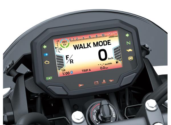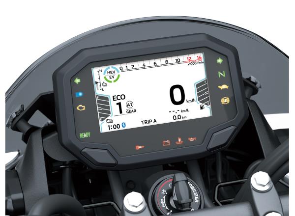 Thanks to the contribution of its traction motor, the Z7 Hybrid’s fuel economy is superior to even that of Kawasaki’s own Z250.