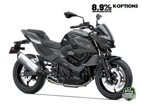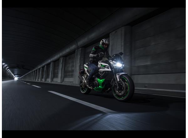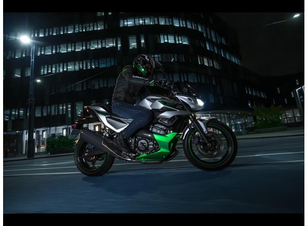 Silver and Lime Green with a semi-matte finish, the Z7 Hybrid’s colour & graphics contribute a fresh, futuristic image for Kawasaki’s HEV models.