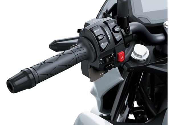 This convenient mode assists with manoeuvring in a parking lot. When engaged, opening the throttle moves the bike forward at walking speed. Closing the throttle past the “zero” point moves the bike in reverse.