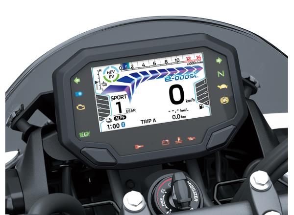 Like all Kawasaki motorcycles, the Z7 Hybrid was designed to be fun to ride and fun to control. In addition to the responsive, rider-friendly hybrid power unit and light, agile chassis, riders can look forward to new experiences like powerful acceleration with e-boost, and button-shifting backed by Kawasaki’s proprietary logic and unique electronically controlled transmission.
