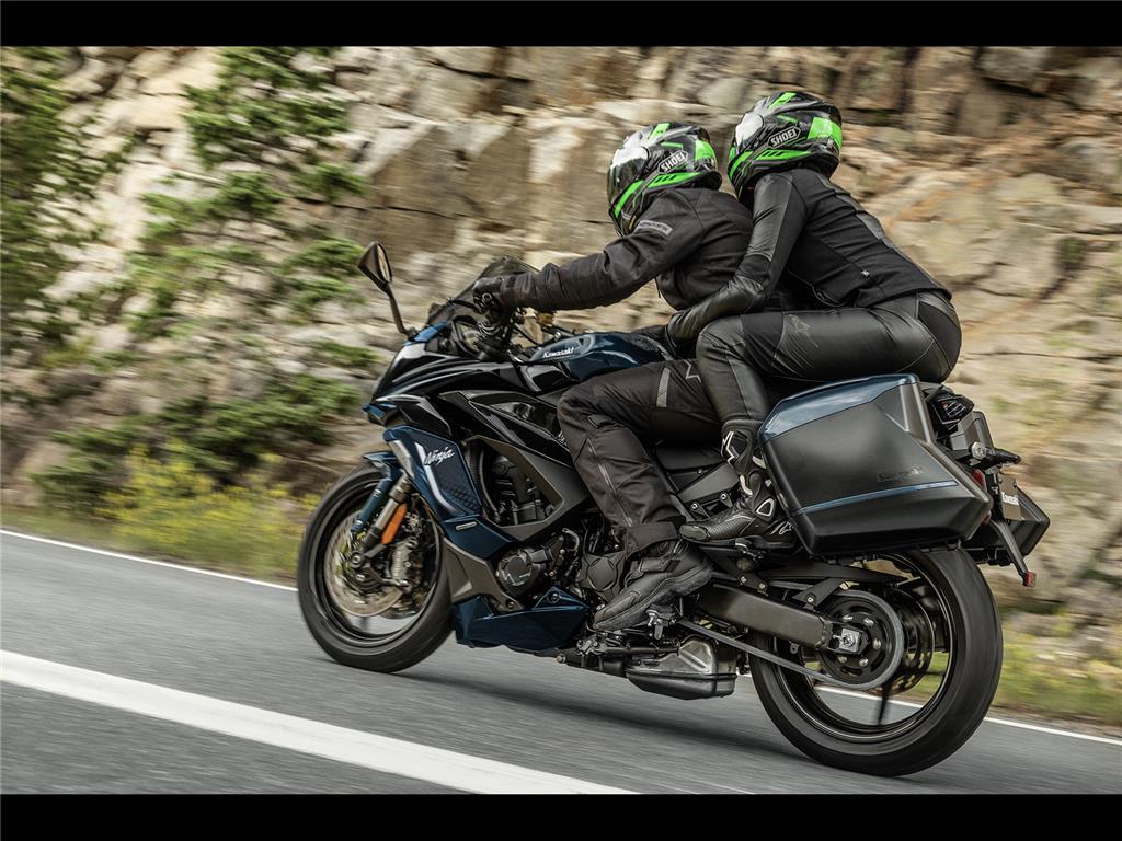 The Ninja 1100SX takes sport riding enjoyment to the next level, with a larger-displacement engine and improved KQS. Sporty handling, supersport-style chassis components and dynamic Ninja styling from its predecessor are maintained, with the superbly balanced engine-chassis package contributing to street-riding excitement in a wide range of situations.