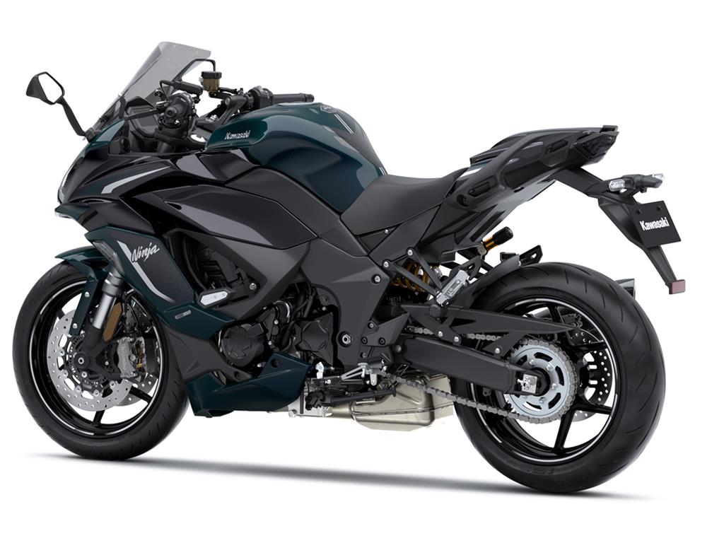 Styling that highlights the Ninja 1100SX’s Ninja family image and sport riding potential features streamlined looking fairings and a single-sided muffler.