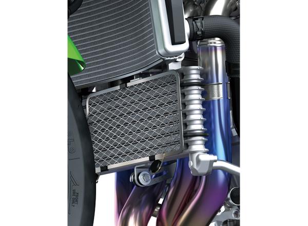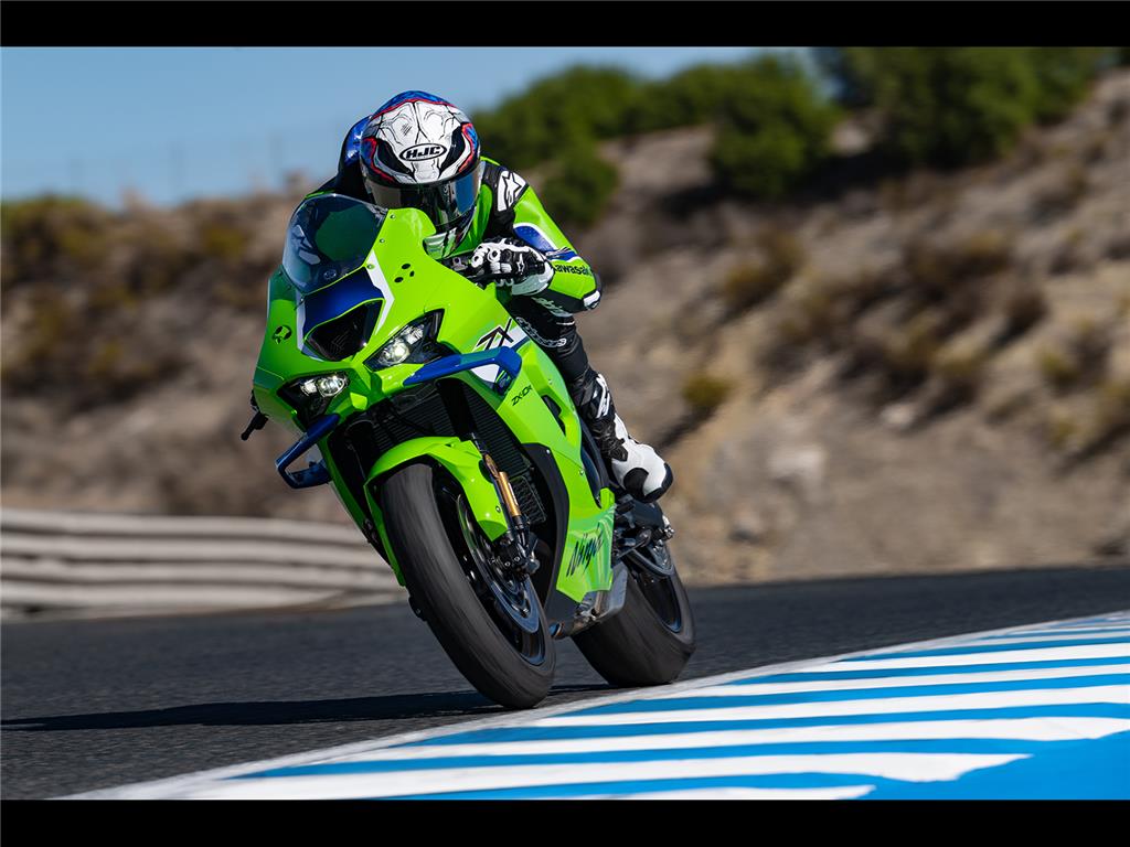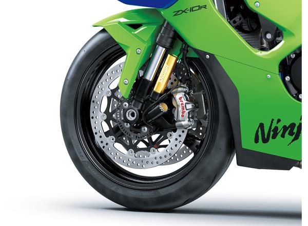 Adding to the Ninja ZX-10R’s highly acclaimed control, cornering performance, and light handling, updates to the chassis geometry—tuned to match the effect of the new winglets—contribute to improved rear-wheel traction and enhanced secondary cornering force, which facilitates steering the bike from the rear when track riding.