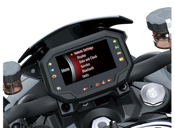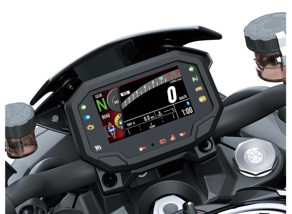 The Z H2’s advanced electronics package includes numerous electronic control systems such as KTRC, KCMF, and KIBS, as well as an IMU that provides chassis orientation feedback to KIBS and KTRC. These rider-support systems offer the peace of mind to handle the power of the supercharged engine, while providing a wide range of information. In addition, Electronic Cruise Control and KQS further enhance riding convenience. In addition, a choice of three Power Modes, and integrated Riding Modes that link KTRC and Power Mode are extremely easy to operate, allowing riders to focus on their ride.